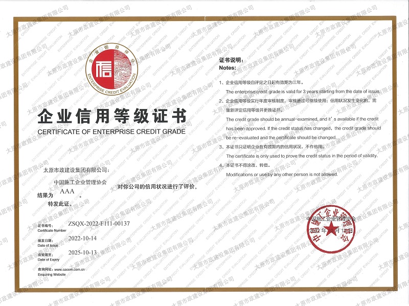 資質證書 營業執照 2022年度市政工程最高質量水平評價_H5-1路道路及配套工程(二標段) 2022年度工程建設誠信典型企業 中國施工企業管理協會_AAA級企業信用等級 2022年度全國市政工程建設優秀質量管理小組三等獎_''核動力QC小組”提高瀝青路面壓實度合格率”